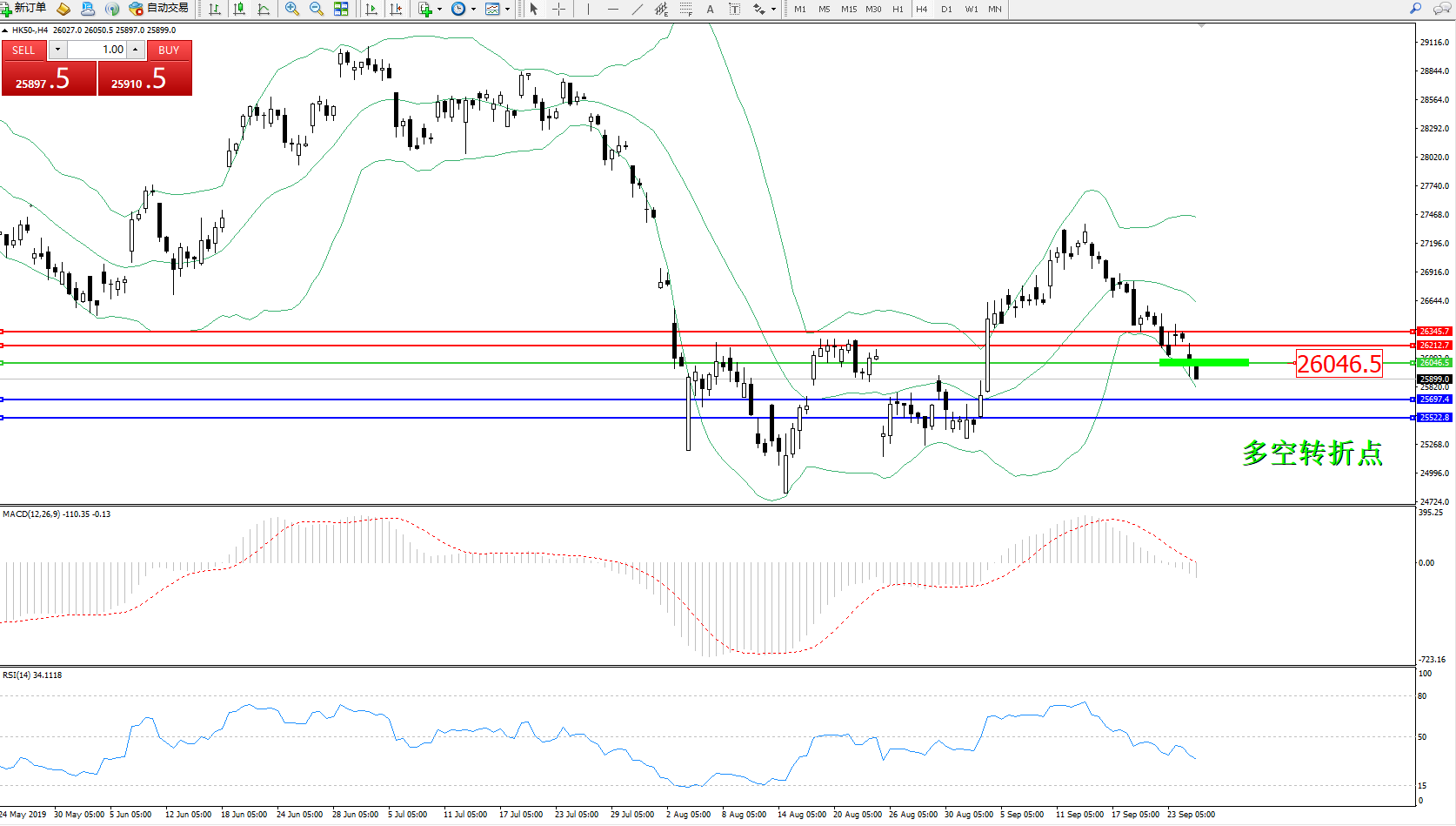 香港恒生指数9月25日(周三)收盘下跌335.65点,跌幅1.28%,报25945.35点;港股早上跟随外围低开118点,随后再逐步扩大跌幅,失守26000关口,低见25899。欧洲和日本制造业数据疲弱,美国经济数据整体表现不佳,经济衰退风险犹在,美国众议院启动弹効特朗普的调查程序,美国政治风险加大。恒指趋势已经形成,恐将继续下跌,即便反弹也会小小幅度。切莫在市场尚未到达极端的时候贸然出手。医药板块的机会自不必说。投资者也可以关注下未来国庆7天长假巨大客流带来的机会。