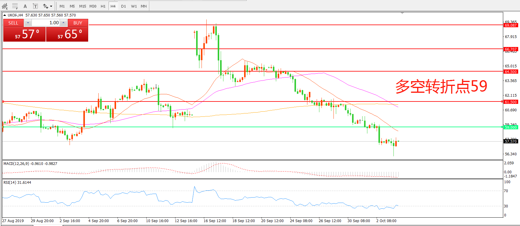 交易策略:在59.00之下看跌,目标57.00 55.00