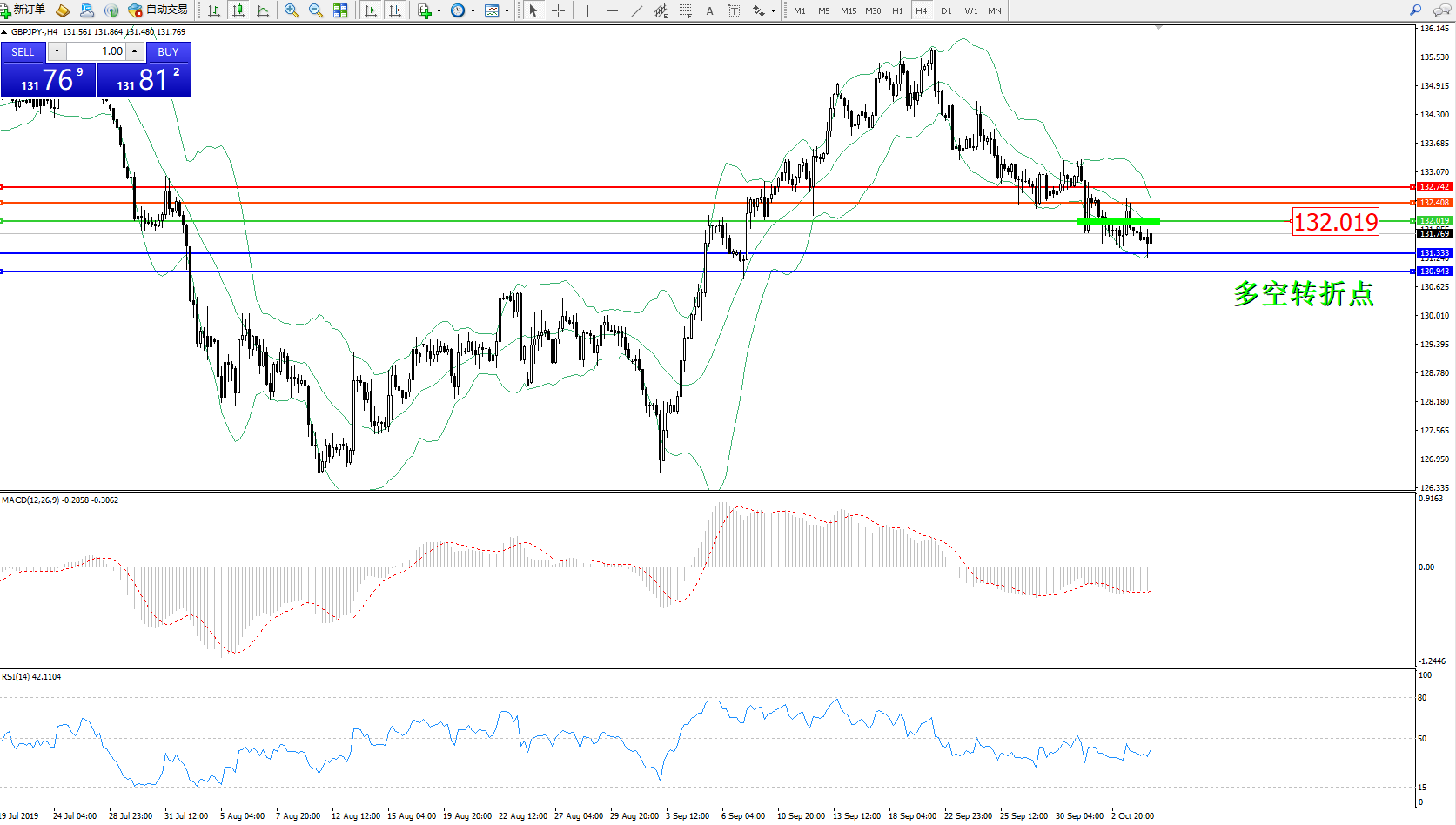 交易策略:132.019下方看跌,目标131.333130.943