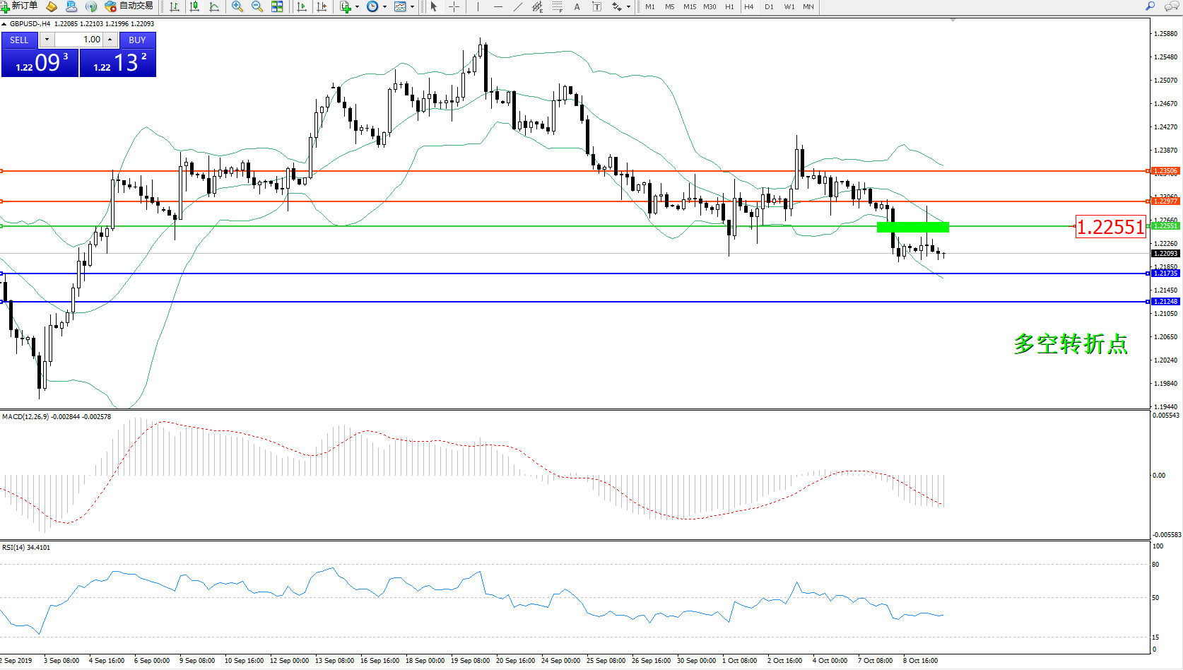 备选策略:1.22551上方看涨,目标1.22977、1.23506