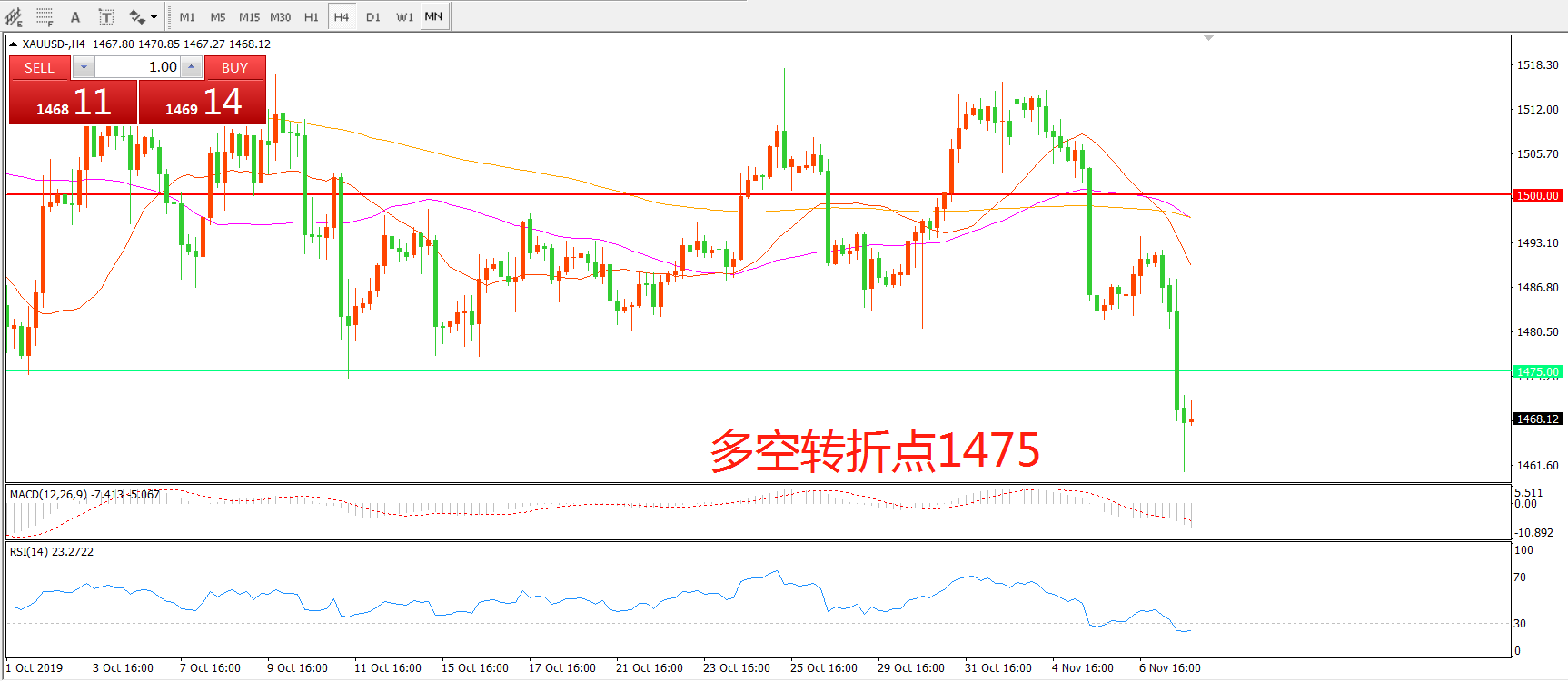 周四(11月7日),中国商务部表示过去两周中美双方牵头人就妥善解决各自核心关切,进行了认真、建设性的讨论,同意随协议进展,分阶段取消加征关税。市场避险情绪大幅回落,金价承压重挫,跌近30美元,收报1467.90美元/盎司。过去一周,一些支撑黄金市场的风险开始缓解,中美谈判、英国脱欧和美联储显示出鹰派倾向都对黄金形成打压,金价出现获利回吐也就不足为奇。