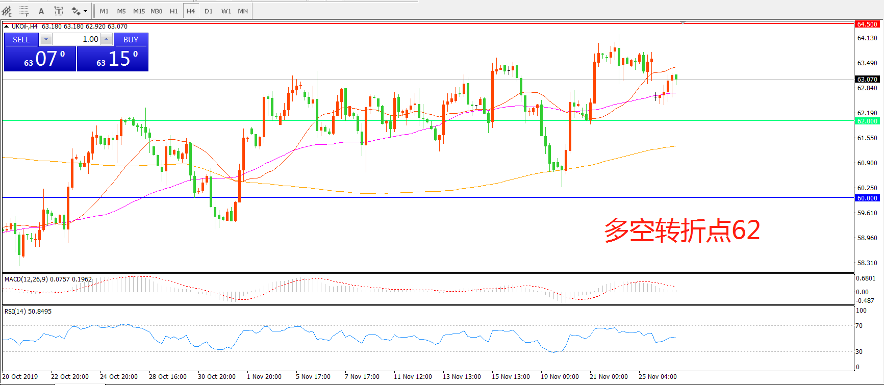 周二(11月26日),国务院副总理刘鹤与美国贸易代表莱特希泽、财政部长姆努钦通话。双方同意就第一阶段协议磋商的剩余事项保持沟通,中美贸易乐观情绪持续为风险资产提供支撑,布伦特原油周二收漲0.9%,報63.10美元/桶。与此同时,市场对OPEC减产的预期越来越强烈,即将在12月份召开的OPEC大会将对油价产生重要影响。