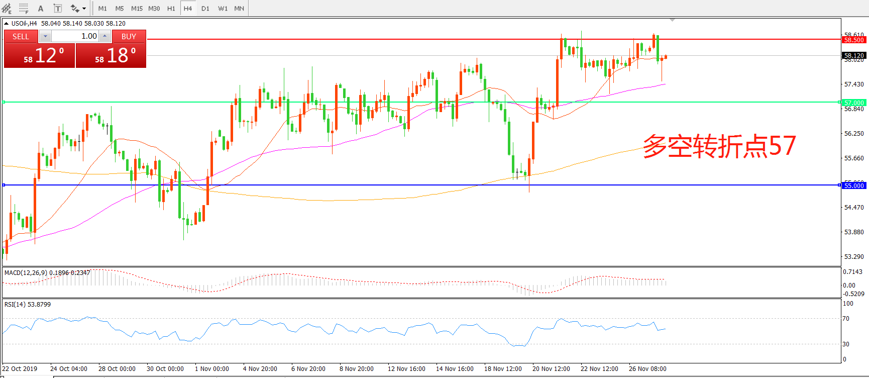 交易策略:在57.00之上看涨,目标58.50 62.00