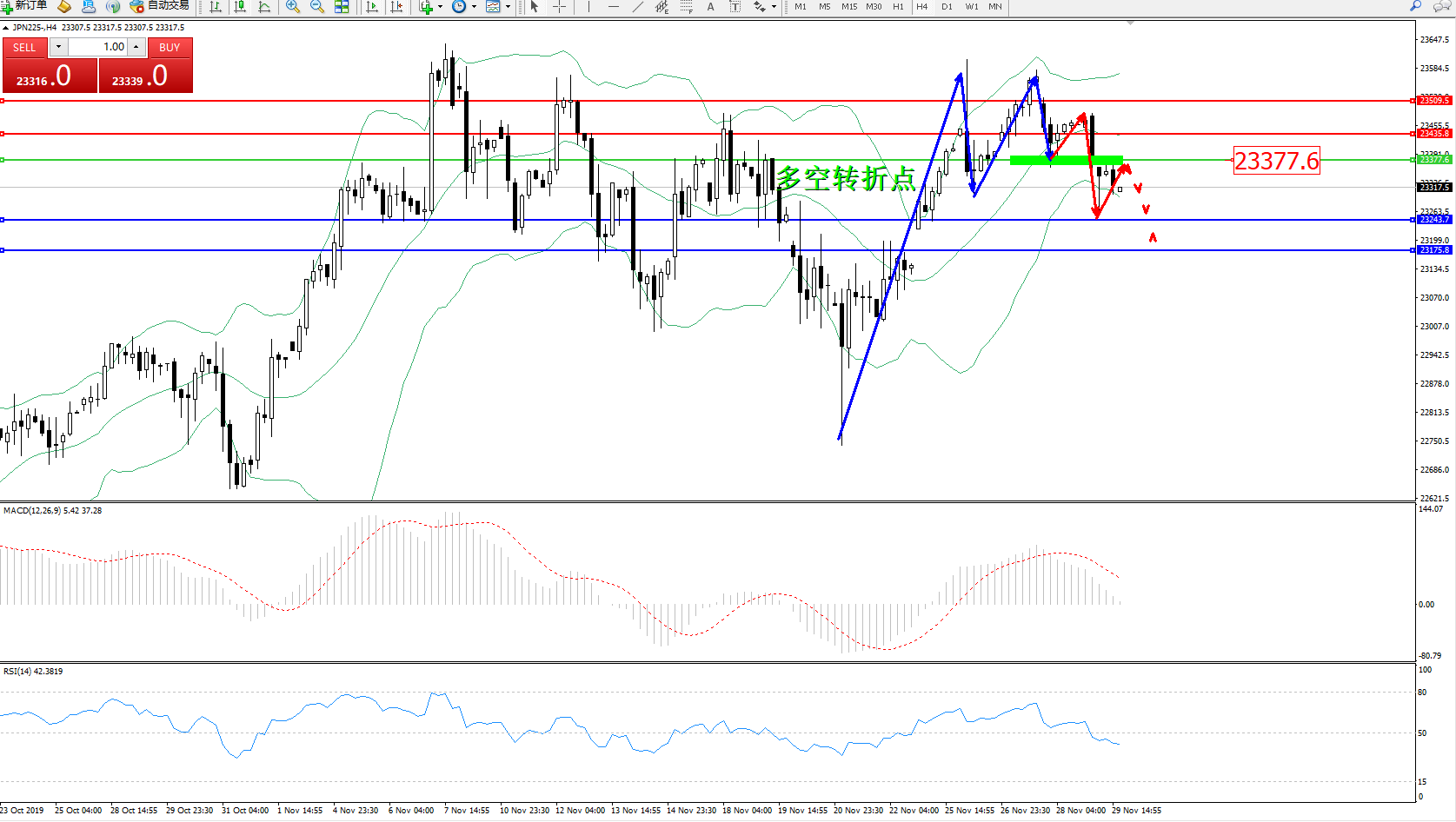 日经指数JPN225——4小时K线图: