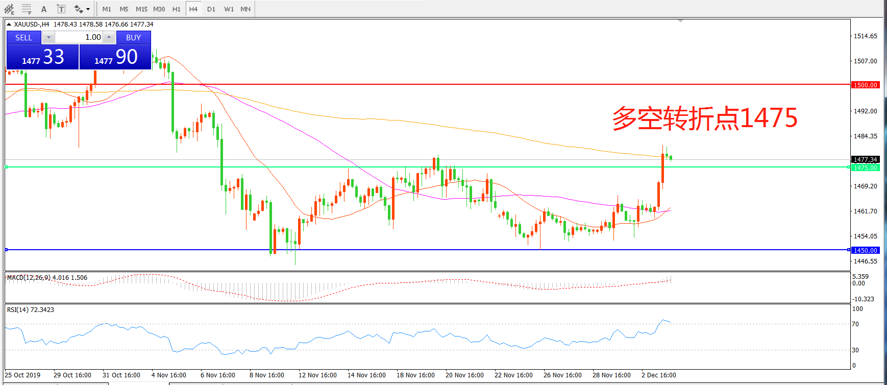 交易策略:在1475.00之上看涨,目标1500.00 1530.00