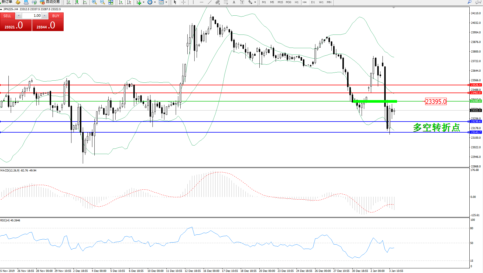 日经指数JPN225——4小时K线图: