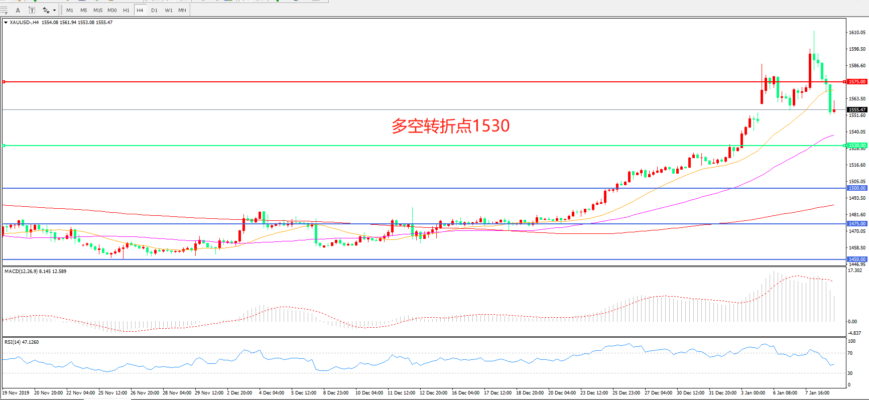 周三(1月8日),伊朗向伊拉克的美军基地发射了10几枚弹道导弹,骤然升级的中东局势导致金价飙升至1611美元/盎司,但晚间美国总统特朗普在讲话中表现温和,他强调,美国拥有强大的武力,但这不意味着美国会使用它,美国准备好与所有寻求和平的人一起拥抱和平。