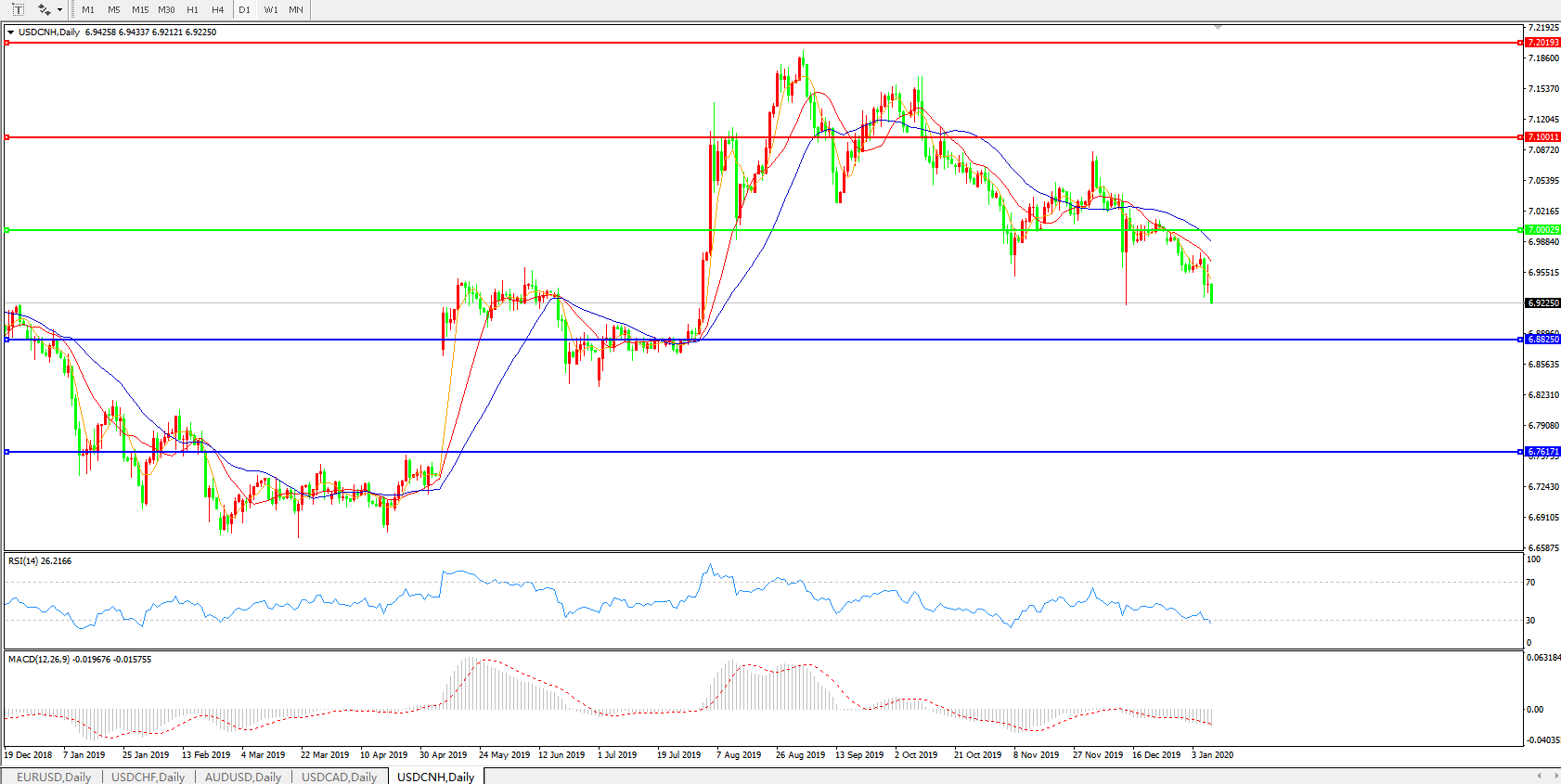 美元兑人民币USDCNH    日线图: