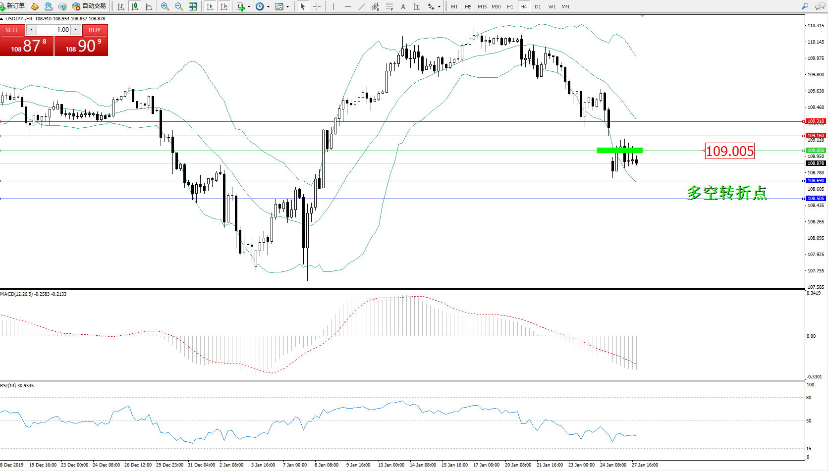 交易策略:109.005下方看跌,目标108.690108.505