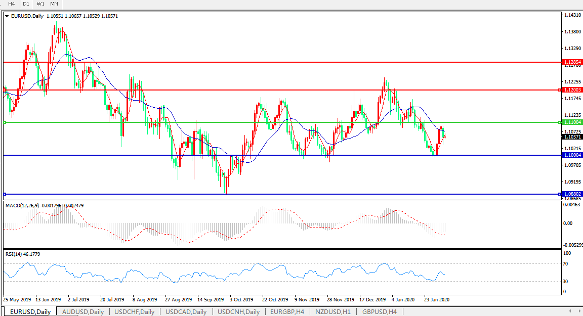 交易策略:1.1100下方看跌,目标1.1000、1.0880