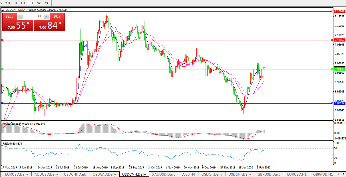 交易策略: 在7.0000之上,看涨,目标价位为7.1000,然后为7.2000。