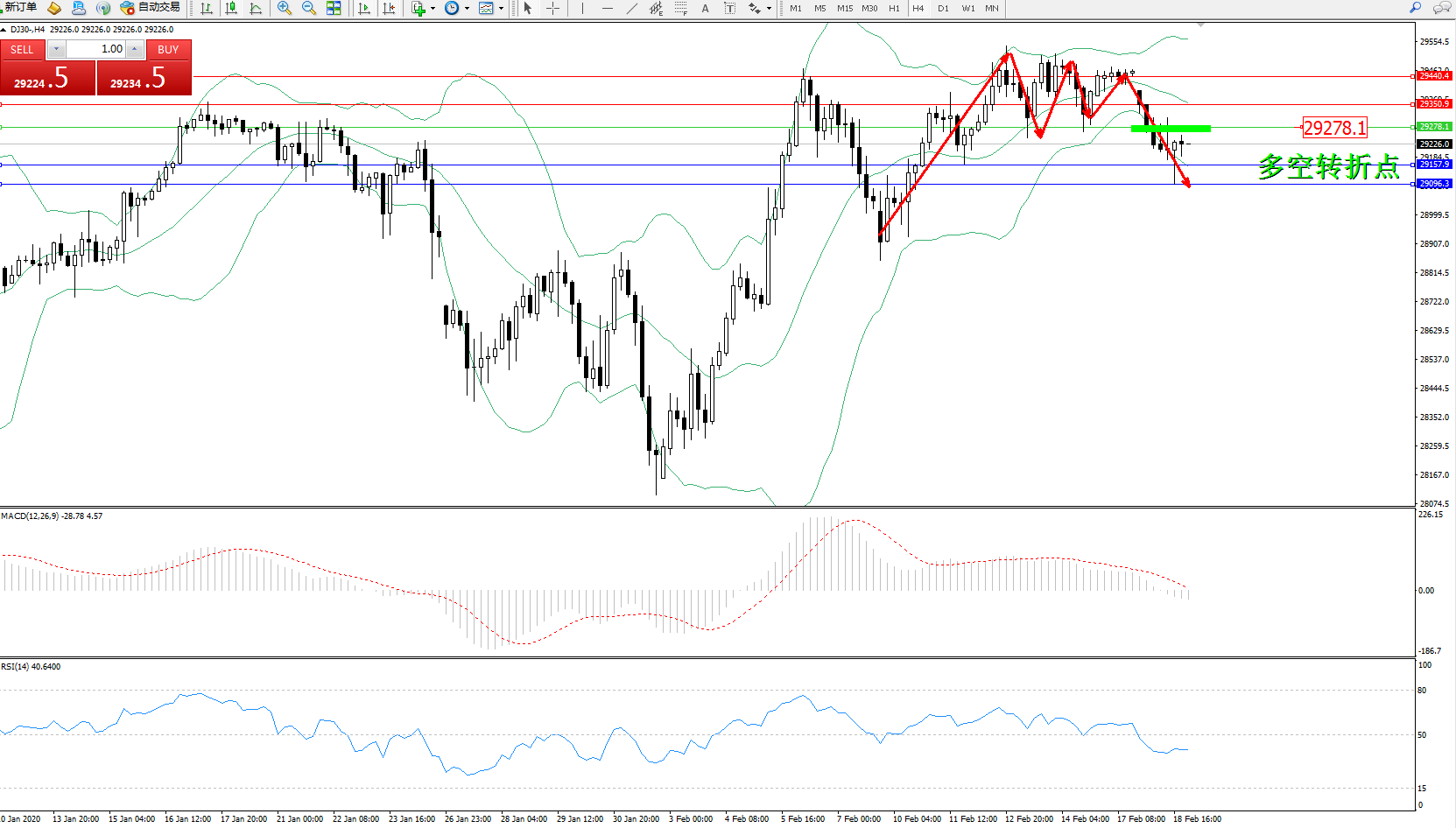 技术点评:空头下行走势延续布林带指标下轨附近弱势不断下探中,且布林带指标呈张口走势后有即将收口迹象,MACD指标跌破0轴线后维持弱势整理平移,RSI指标纠结于50均衡线下方窄幅震荡平移中;