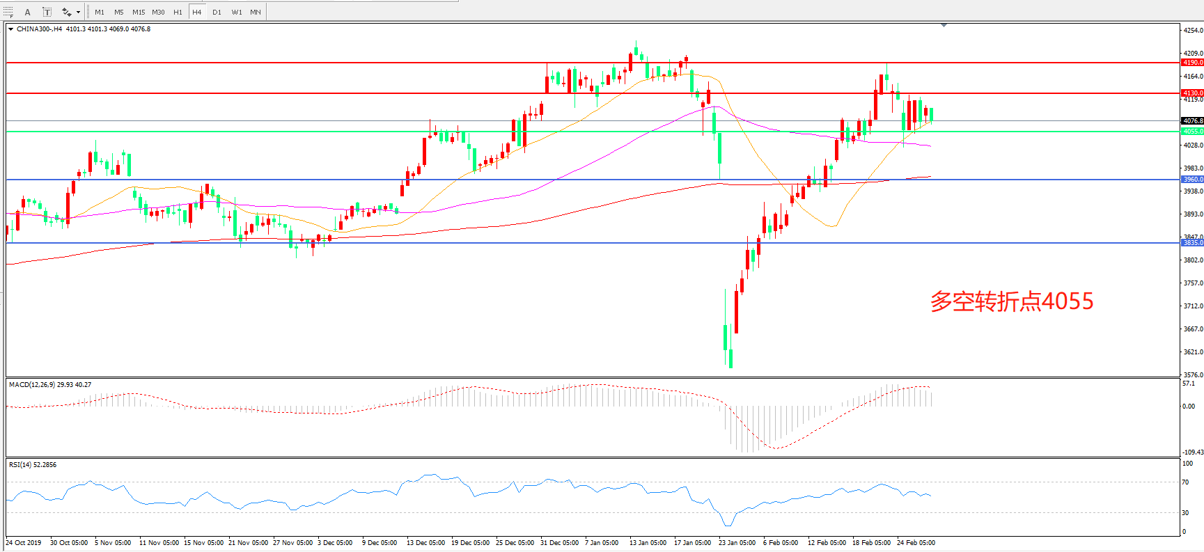 4小时图看,沪深300延续区间震荡,4130成为上方阻力,振幅逐渐收窄,短期均线走平,MACD红柱减少,RSI指标走平,日内延续震荡概率较大。