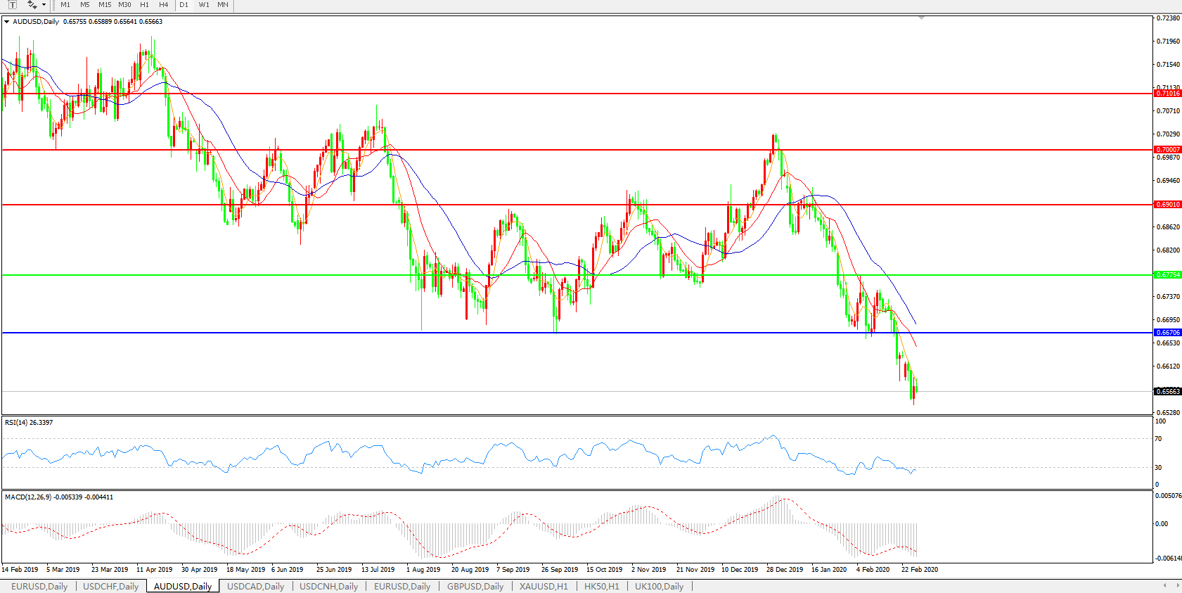 澳元兑美元在周四日内小幅走强,脱离此前录得的11年低位 ,因日内亚太市场的风险情绪有所回暖,加之美元指数继续回落。不过,即使如此,澳元日内涨幅仍未收复周三跌幅的半数,下行压力因而仍是相当巨大; 尽管公共卫生方面风险消息日内暂时缓和,然而,市场仍然关注全球央行的政策反应,在全球产业链受到冲击的背景下,处于供应链上游的澳洲经济仍会面临冲击,这使得下周率先召开会议的澳洲联储之政策行动前景颇受关注。而这也遏制了澳元汇价的进一步回升空间; 短线澳元汇价须反弹升破周三的开盘高位,即5日均线,暨0.66心理关口,方可迎来进入短线筑底进程的希望,升破10日均线切入位0.6635则会进一步巩固此趋势。但如果汇价跌回0.6550下方,则跌势再续又将是在所难免。