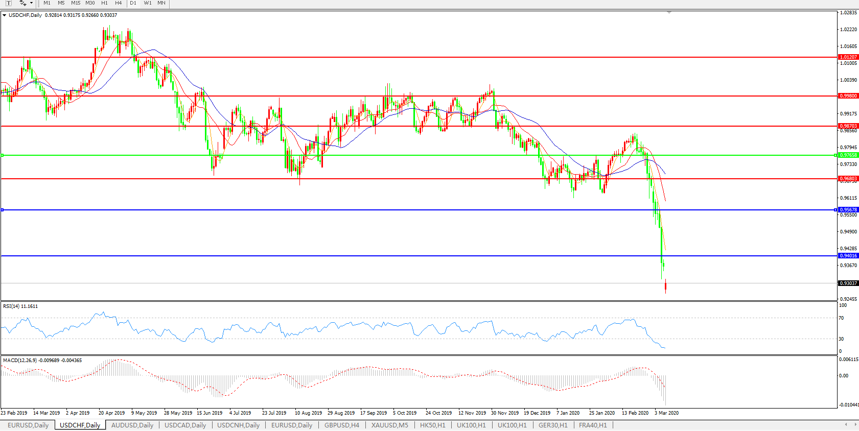 美元兑瑞郎USDCHF 日线图: