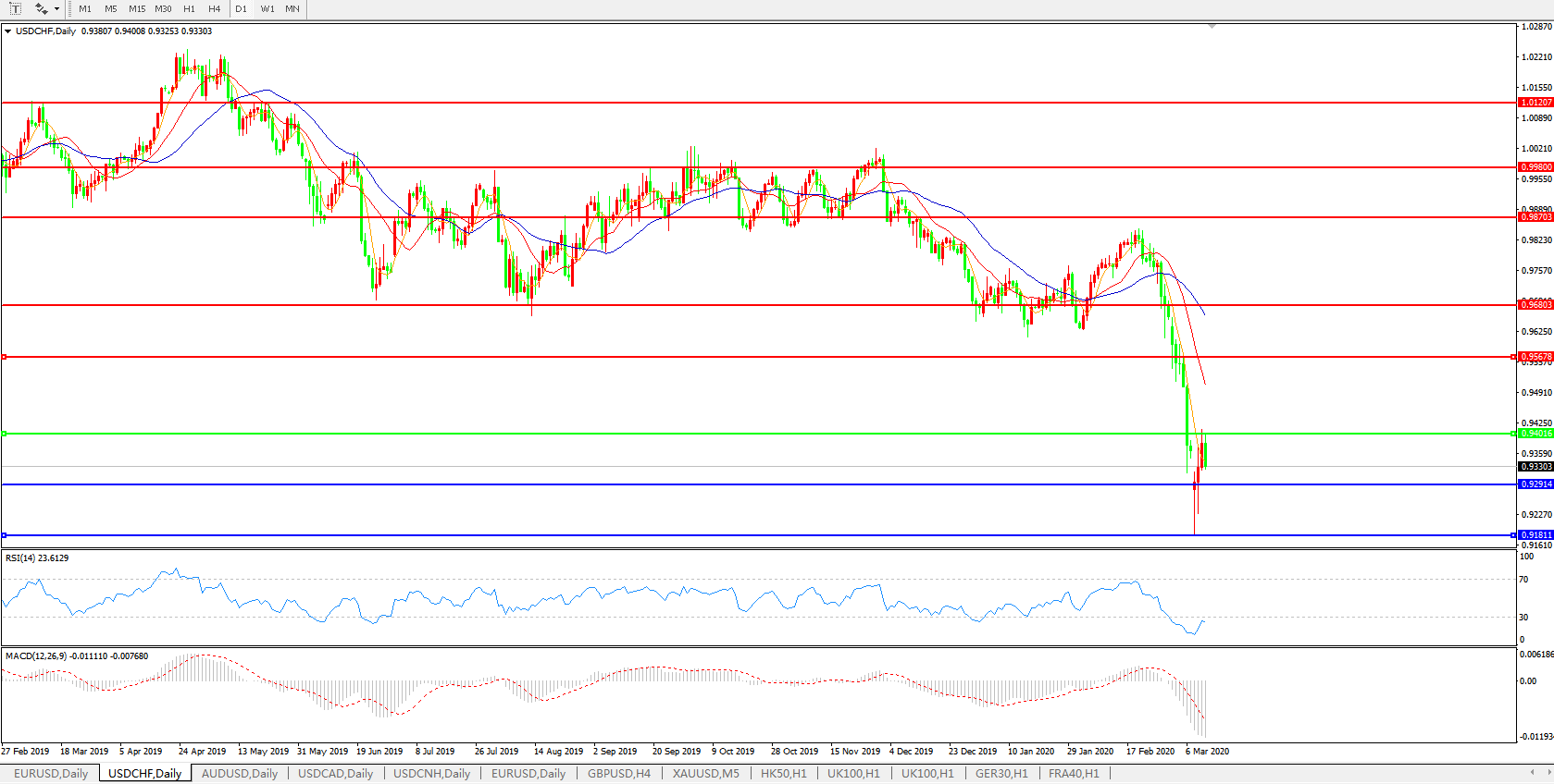 交易策略:0.9400下方看跌,目标0.9290、0.9180