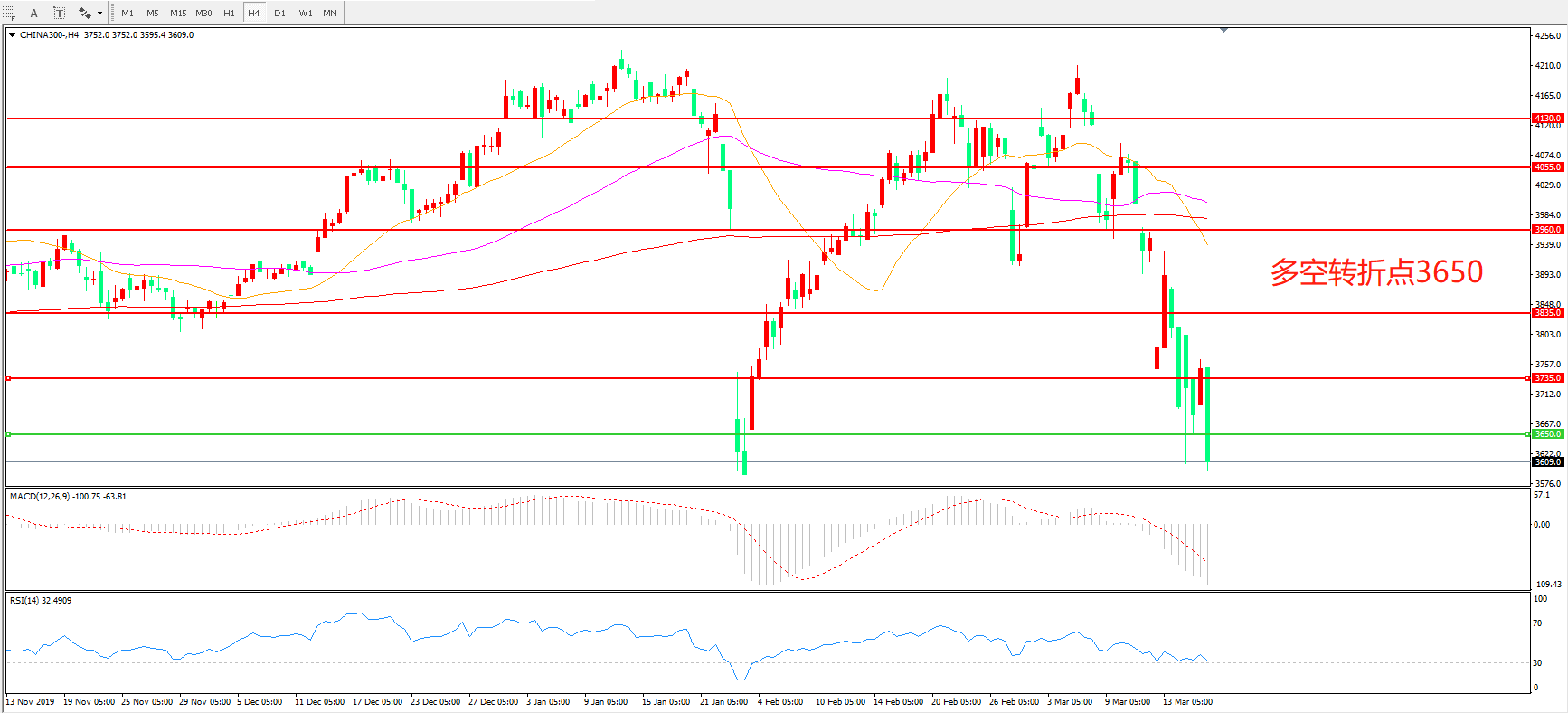 沪深300 CHINA 300 4小时图