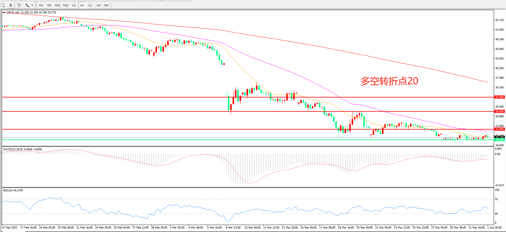 4小时图看,美油延续低位震荡,整体波幅不大,20美元成为短期支撑,短期均线逐渐下压,MACD绿柱减少,RSI指标走平,日内延续震荡概率较大。