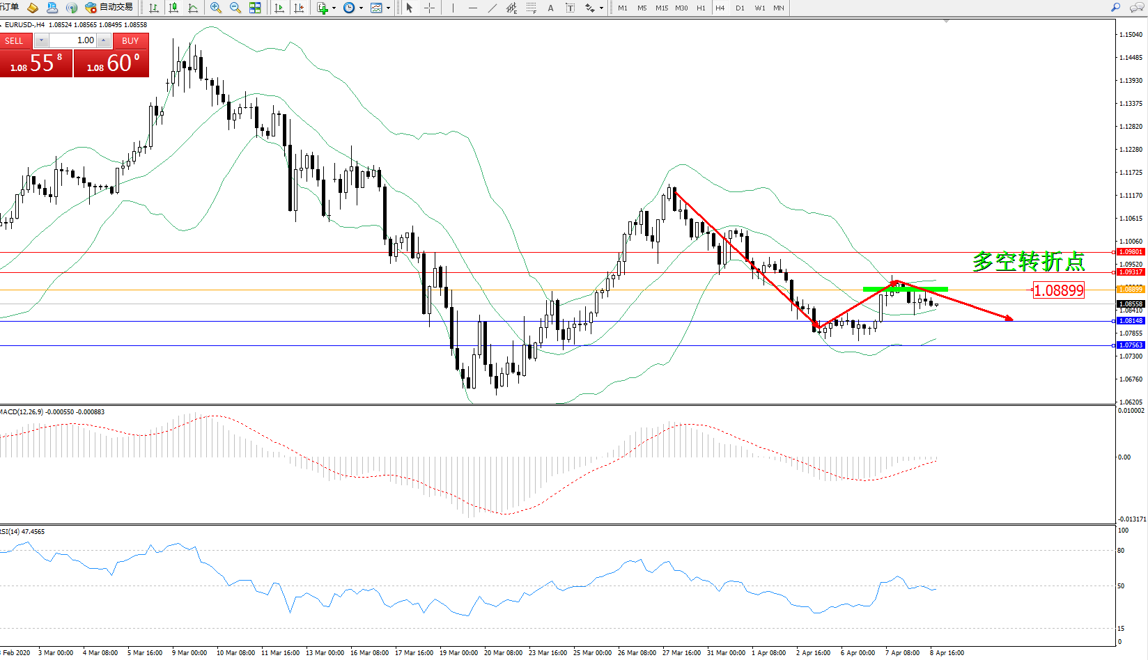 交易策略:1.08899下方看跌,目标1.08148、1.07563