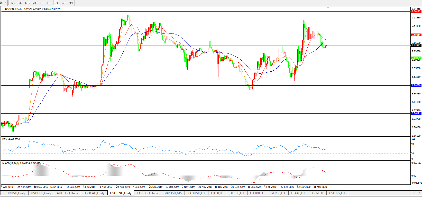 美元兑人民币USDCNH 日线图: