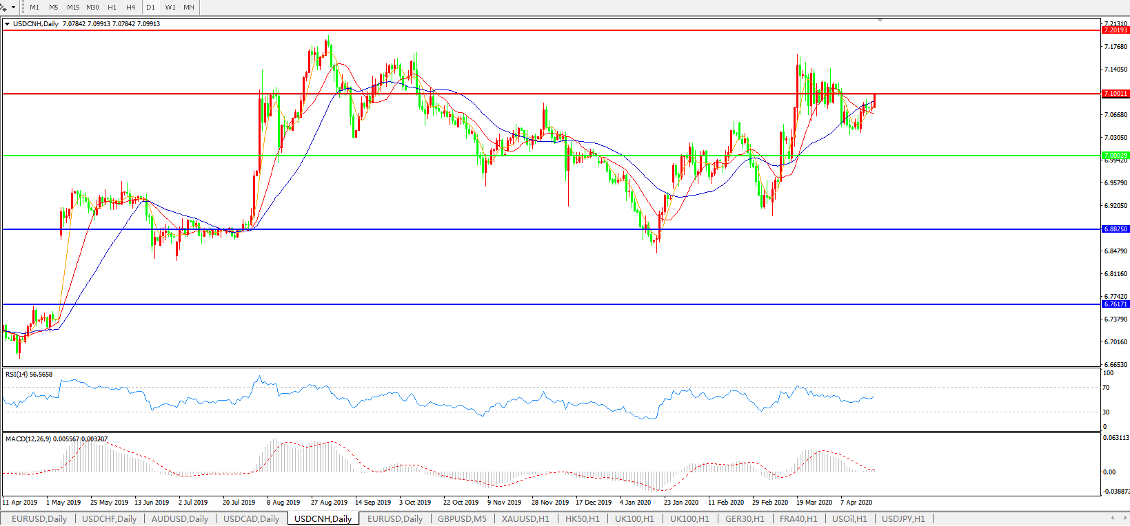 美元兑人民币USDCNH 日线图: