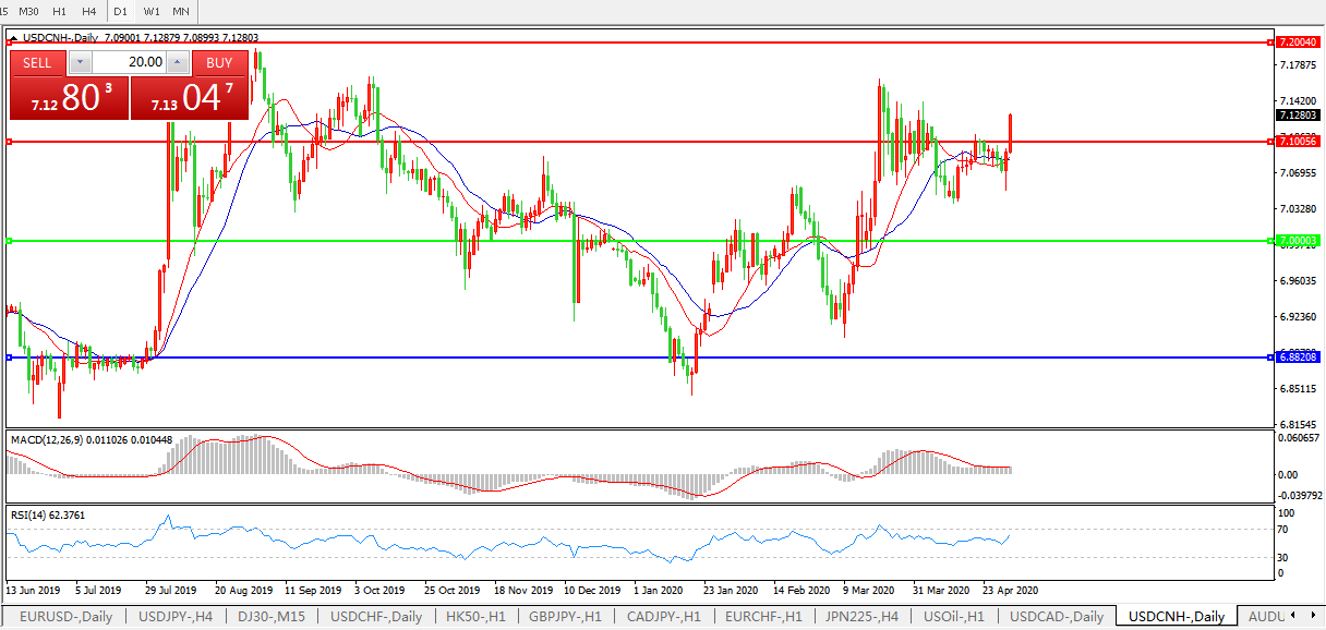 美元兑人民币USDCNH 日线图: