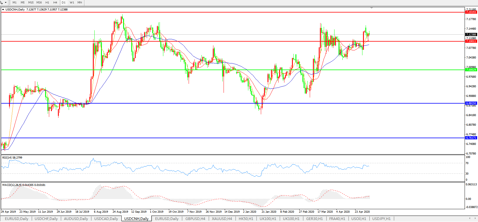 美元兑人民币USDCNH 日线图: