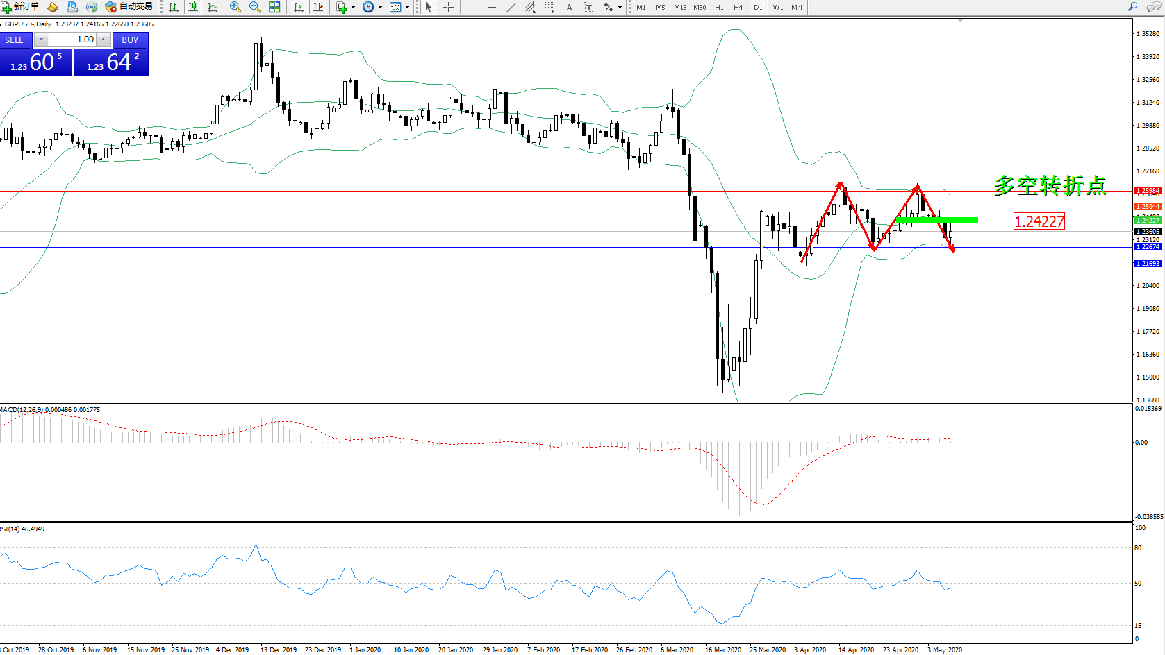 交易策略:1.24227下方看跌,目标1.22674、1.21693