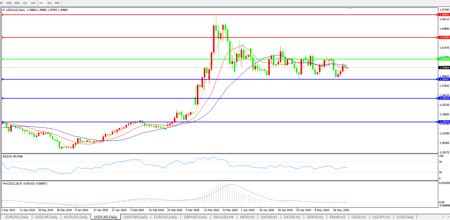 技术面简析:日线图均线发散下行但短期均线拐头,汇价跌破1.40关口后持续小幅反弹,MACD走平且量能几无,RSI趋于走平,预计短期汇价或将在反弹后进一步走低。
