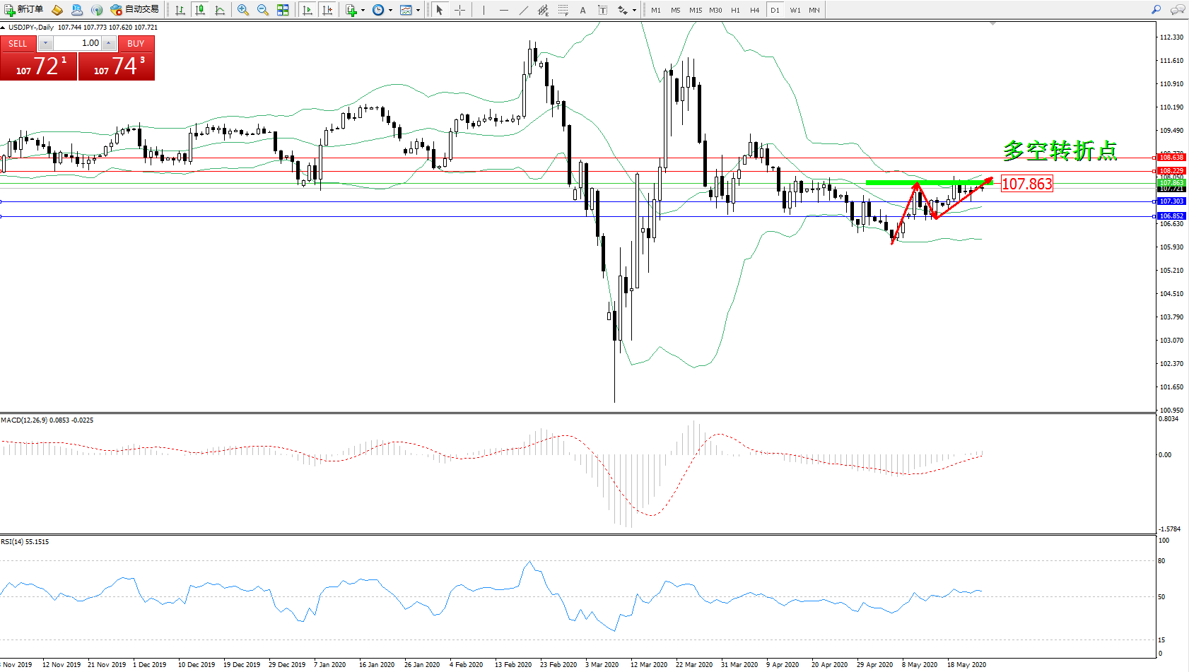 美元兑日元涨0.07%107.71;据经济大臣西村康稔周一提交的一份计划,日本势在解除东京周边以及北海道的封锁,从而结束全国范围的紧急状态。日本首相宣布自本周起该国全境解除隔离封锁措施,此消息为市场早已获悉之状况,因此市场风险情绪受此影响有限。但相比解封,日元投资者更应该关注近期的地缘与贸易风险。日内再美国休市的背景下,美元兑日元汇价继续保持横盘走势,虽然全球市场投资者在周末过后风险胃纳回升,但谨慎情绪犹存,在此状况下,美元与日元汇价也大体保持了同步进退的走势。