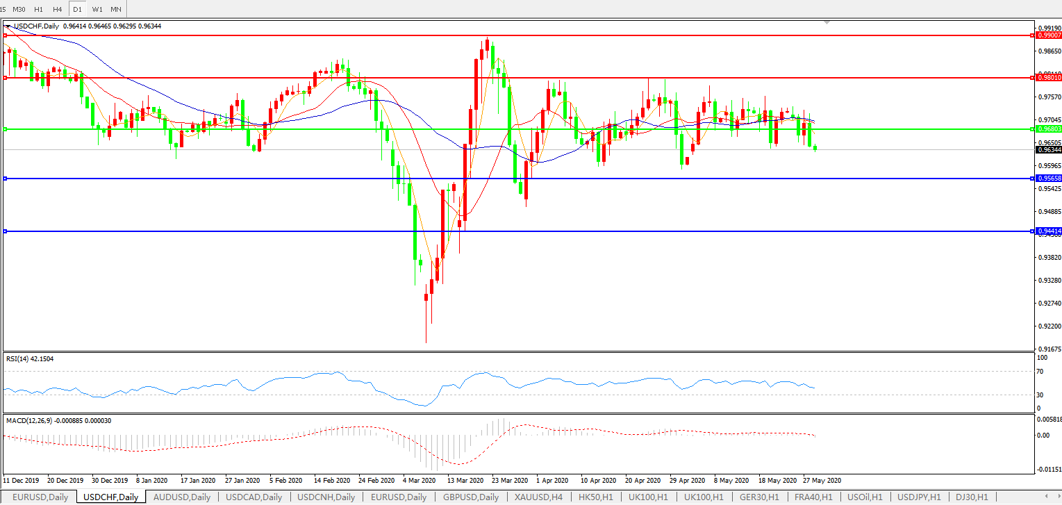 交易策略:0.9680下方看跌,目标0.9565、0.9440