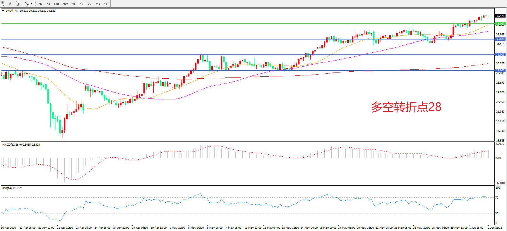 周二(6月2日),OPEC延长减产的预期让多头有了持续推涨的理由,也让油价不断刷新反弹以来高点,布伦特原油高开高走,收报39.52美元/桶,日内涨逾2.7%。如果布伦特能回到40美元,上方将面临的是整整7美元的跳空缺口,缺口处潜藏了大量的阻力,油价能否真的一口气突破,还是要看OPEC最终的决心。