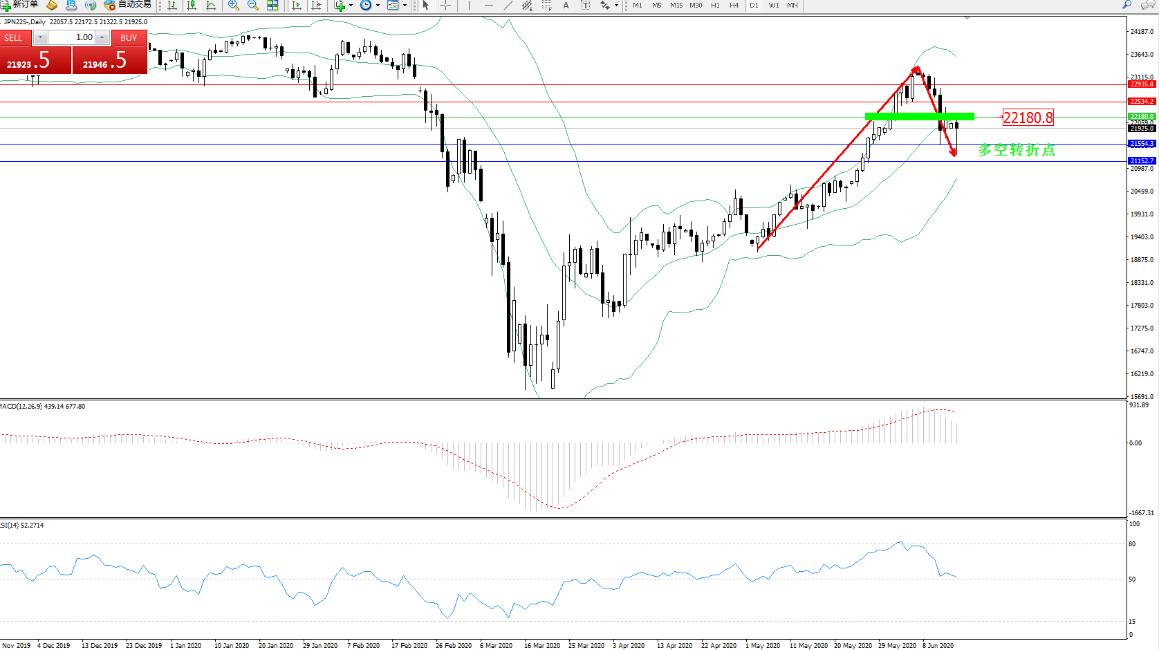 日经225指数6月15日(周一)收盘下跌777.98点,跌幅3.49%,报21527.50点。日本央行已经采取一系列措施支持遭疫情打击的经济。本周将对这些措施进行评估,预计将维持主要政策杠杆不变。日本首相安倍晋三:疫情爆发结束后将重新审视抗疫政策。目前的首要任务是采取一切可用的方式实现经济的复苏。需要确保市场保持对日本财政的信任。将尽一切努力振兴经济,保护就业。这并不意味着我们可以进行无限量的消费。一旦经济正常化,我们希望继续努力恢复日本的财政状况。将寻求在疫情后摆脱通缩,促进经济复苏。