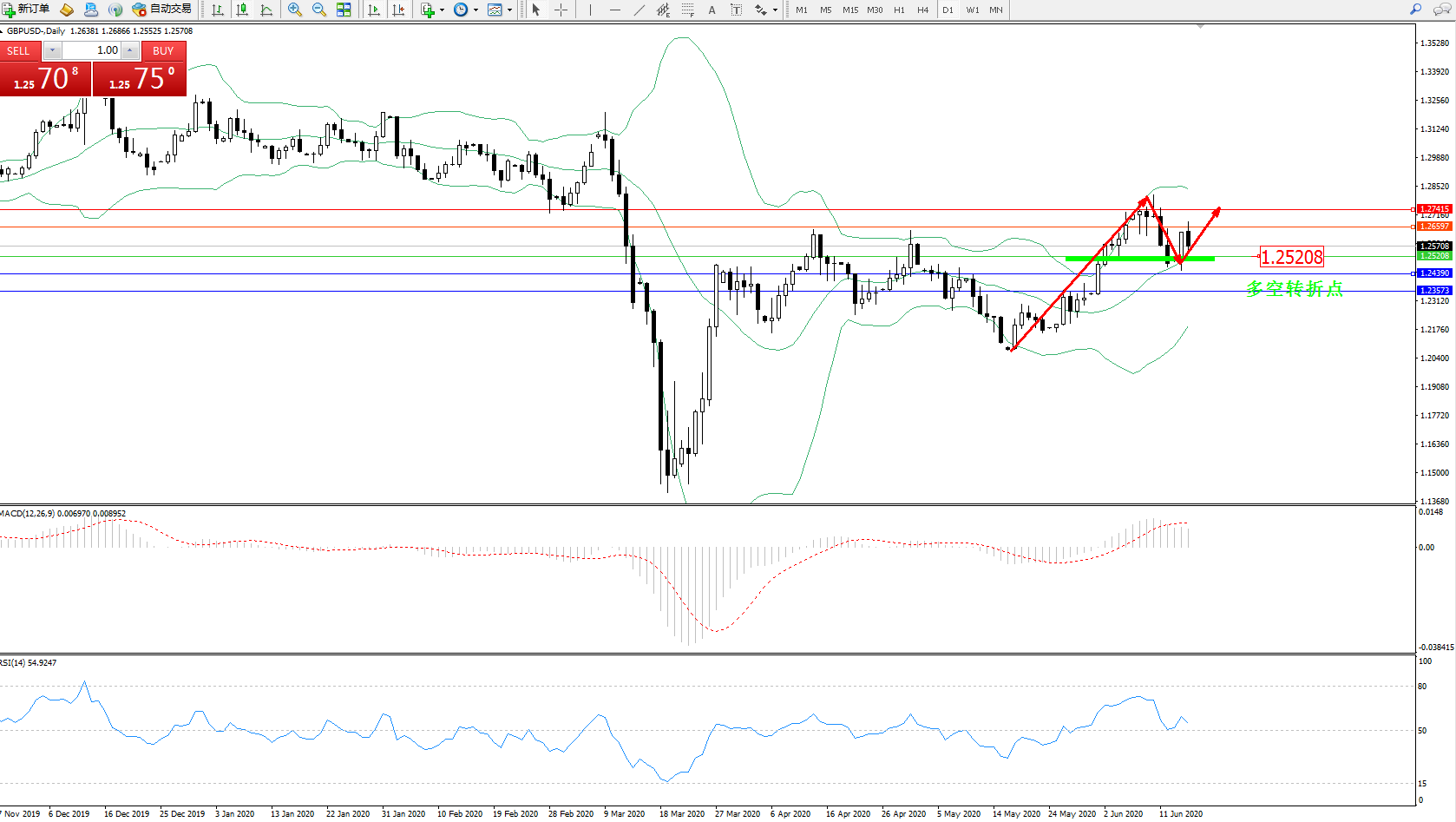 交易策略:1.25208上方看涨,目标1.26597、1.27415