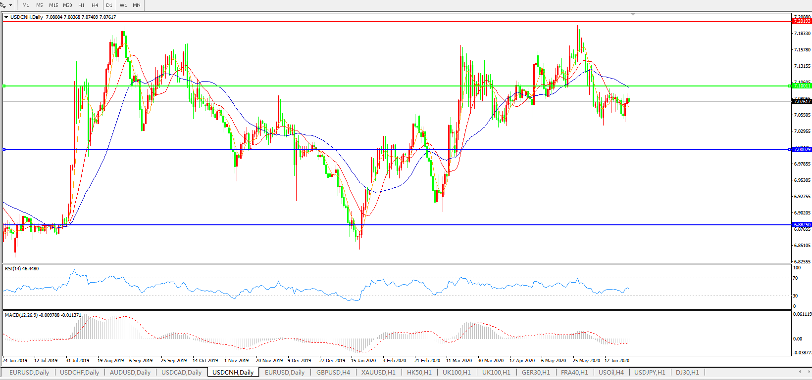 备选策略: 在7.1000之上,看涨,目标价位为7.2000,然后为7.3000。