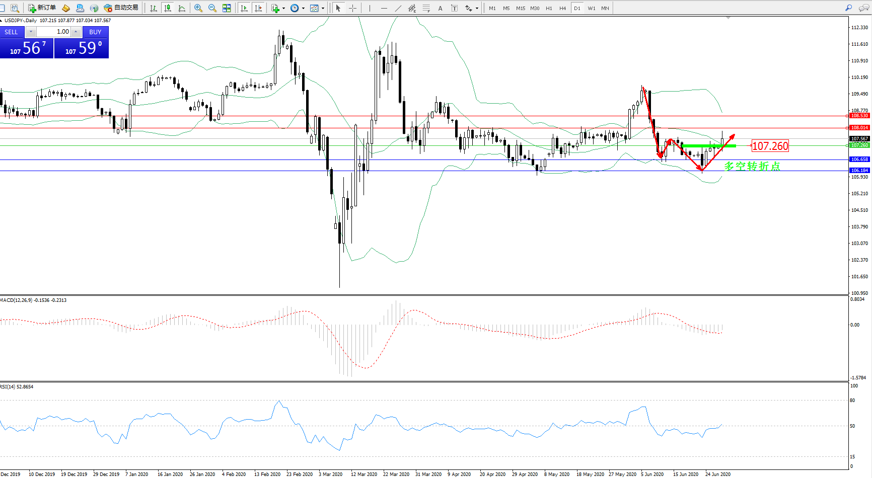 美元兑日圆目前维持在107.579附近短暂拉升状态,尽管避险需求近期升温,因全球疫情变得严峻,但投资者恐慌情绪并不明显,而美元指数尽管承压,但相对于日元表现依旧强势,日元四连跌。日本央行委员原田泰:日本央行需要继续刺激经济来遏制通缩,减少部分准备金的利息是另外一种选择。美国股市的反弹势头近来几周摇摆不定,而即将公布的美国经济数据,以及7月延长部分财政刺激措施的最后期限,可能是对这波反弹的关键考验。投资者将关注未来一周公布的一系列美国经济数据,包括就业报告、消费者信心和制造业数据,寻找线索判断美国经济复苏苗头是否维持完好。有迹象显示经济正在扩张,但强劲程度仍不确定。