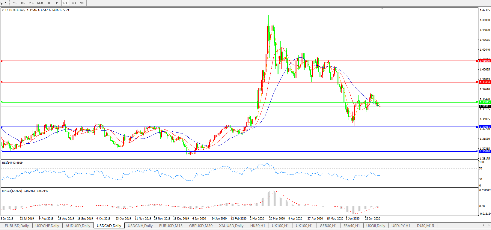 交易策略:在1.3600之下,看跌,目标价位为1.3300、1.3000
