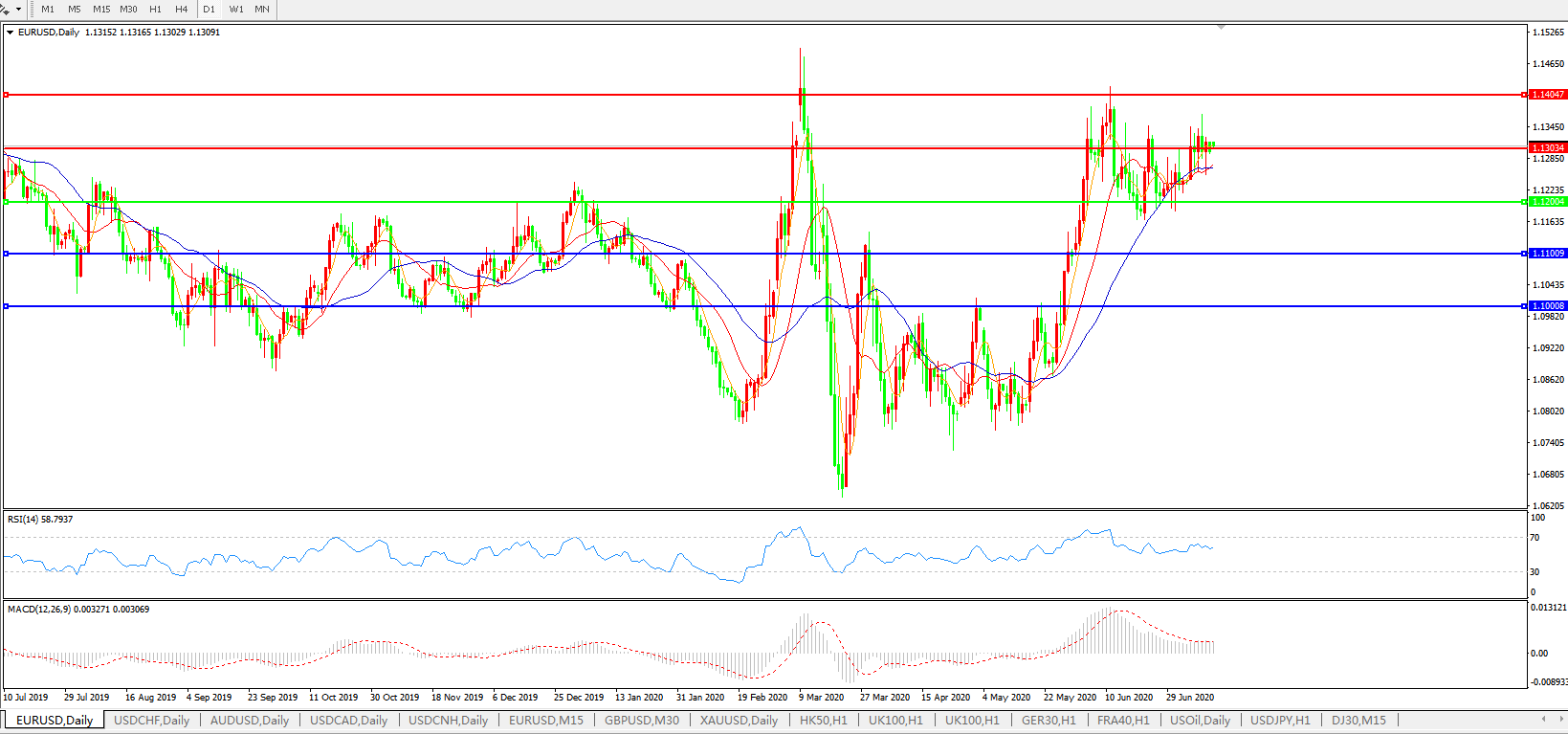 欧元兑美元EURUSD 日线图: