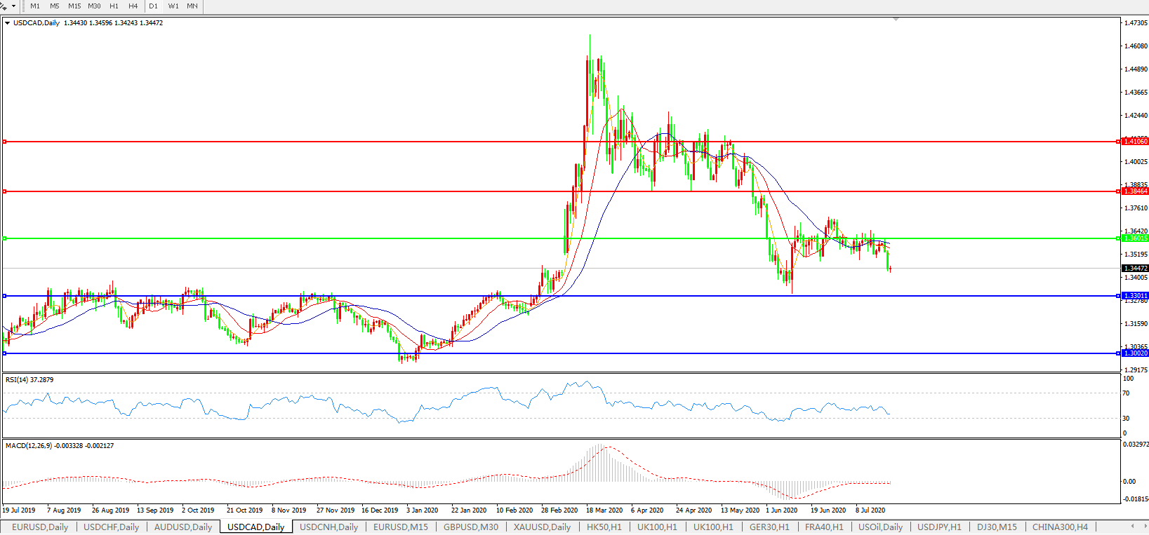 美元兑加元USDCAD 日线图: