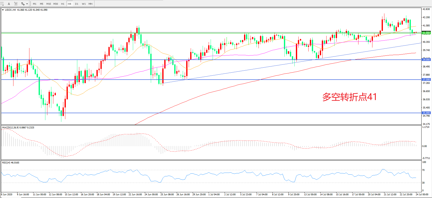 周四(7月23日),美国初请失业金人数的大幅增加,导致了人们对经济复苏的担忧,市场风险情绪回落,WTI原油大幅下挫,收报41美元/桶。新冠疫情的肆虐阻碍了美国夏季驾车高峰期通常需求的复苏,但鉴于美国成品油的产量尚未出现进一步下降,未来几周美国的需求增长速度可能有所改善。