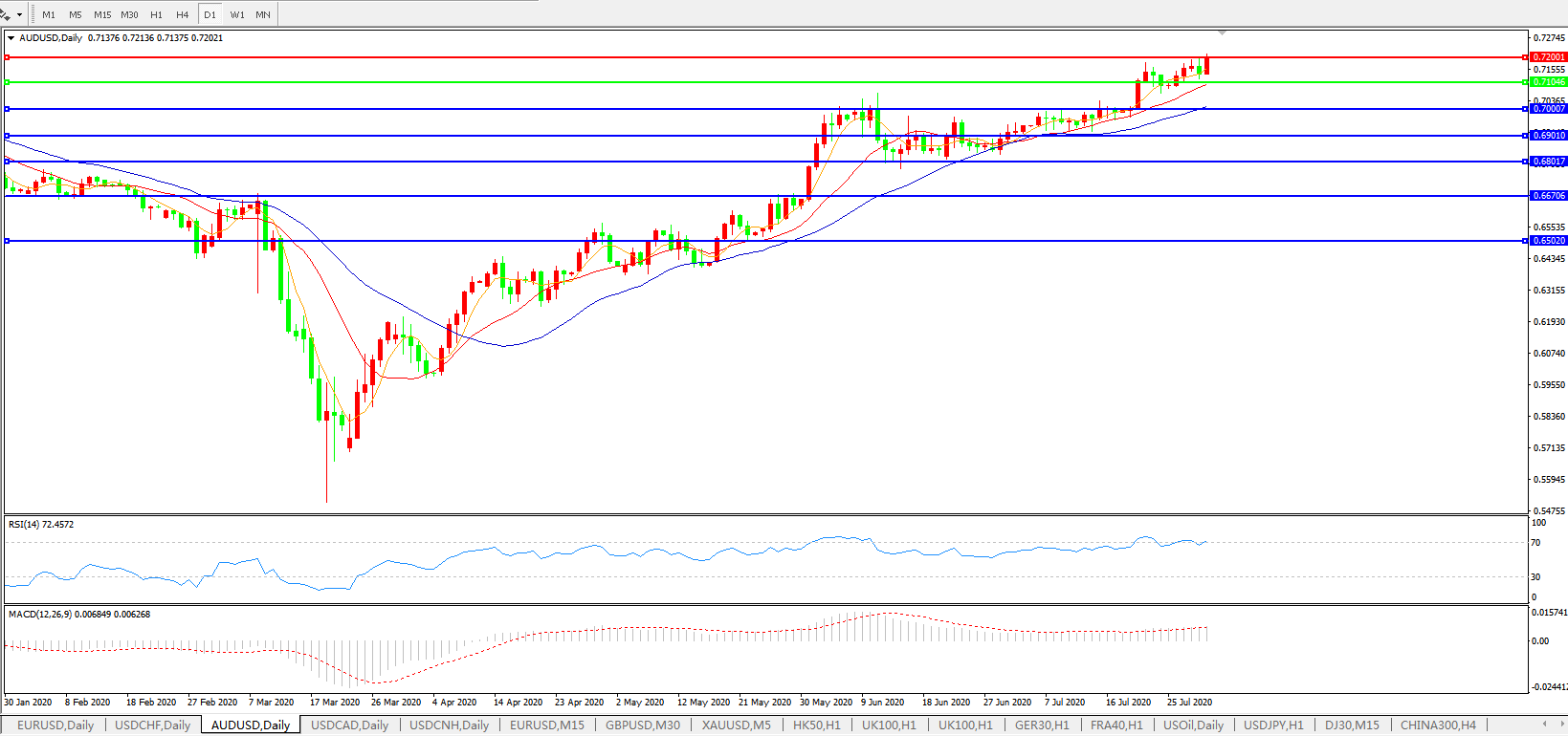 交易策略:0.7000上方看涨,目标0.7100、 0.7200