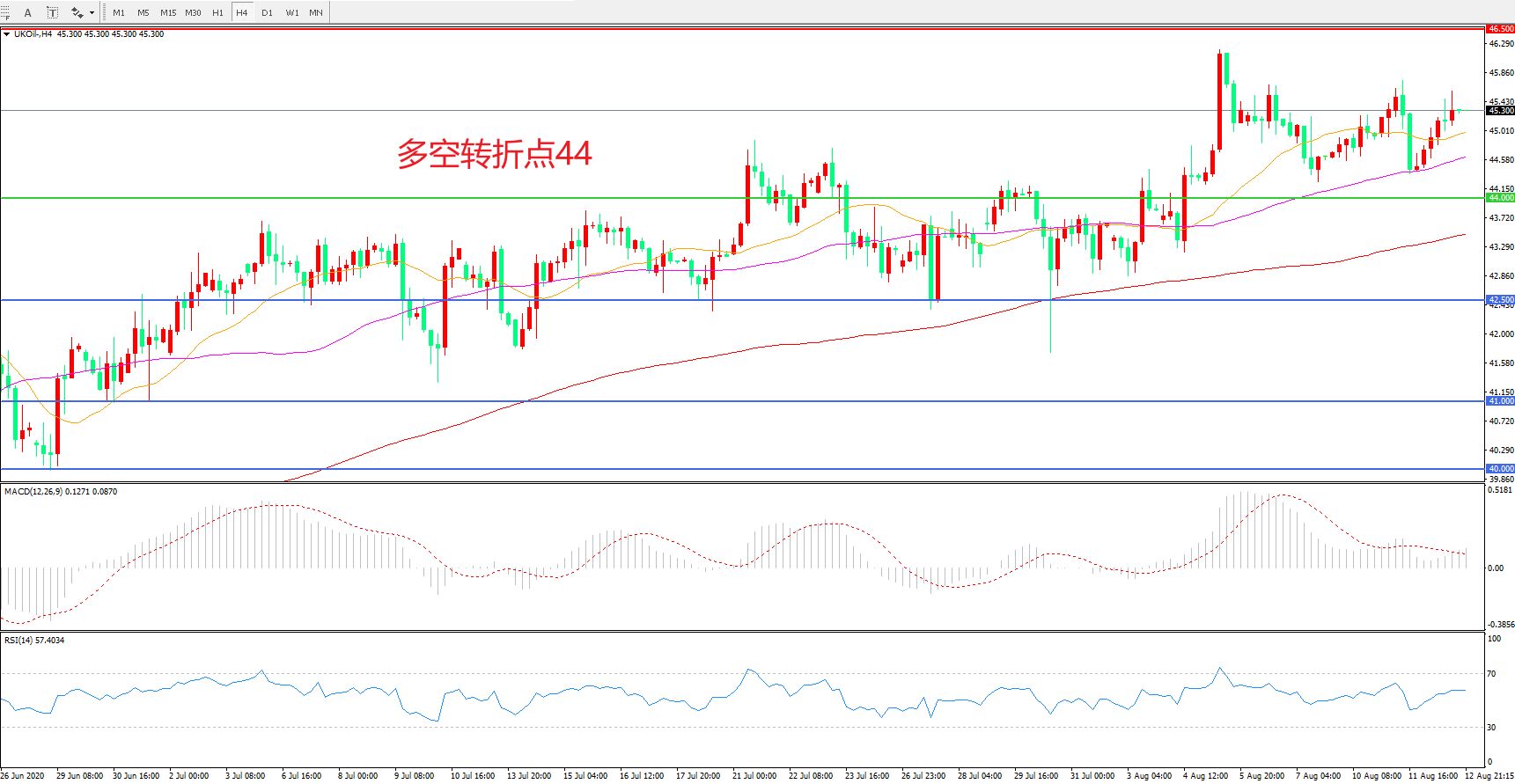 交易策略: 在44.00之上看涨,目标46.50 49.00
