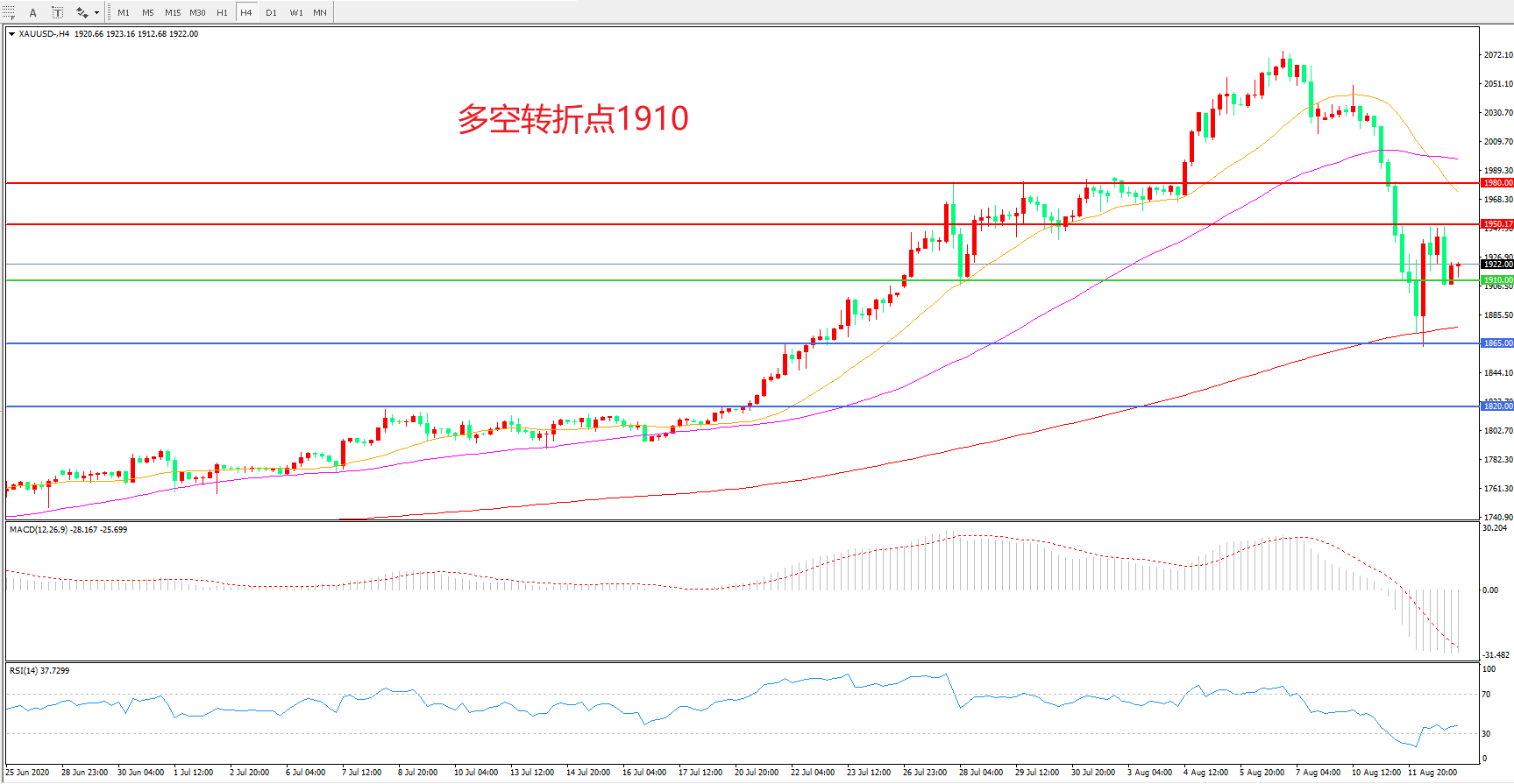 交易策略:在1910.00之上看涨,目标1950.00   1980.00