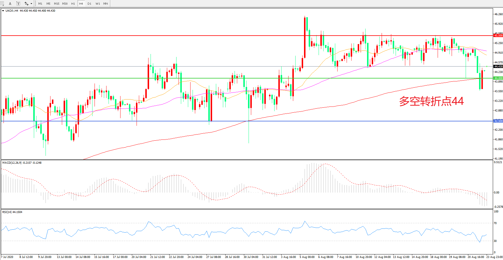 交易策略: 在44.00之上看涨,目标45.50 48.00