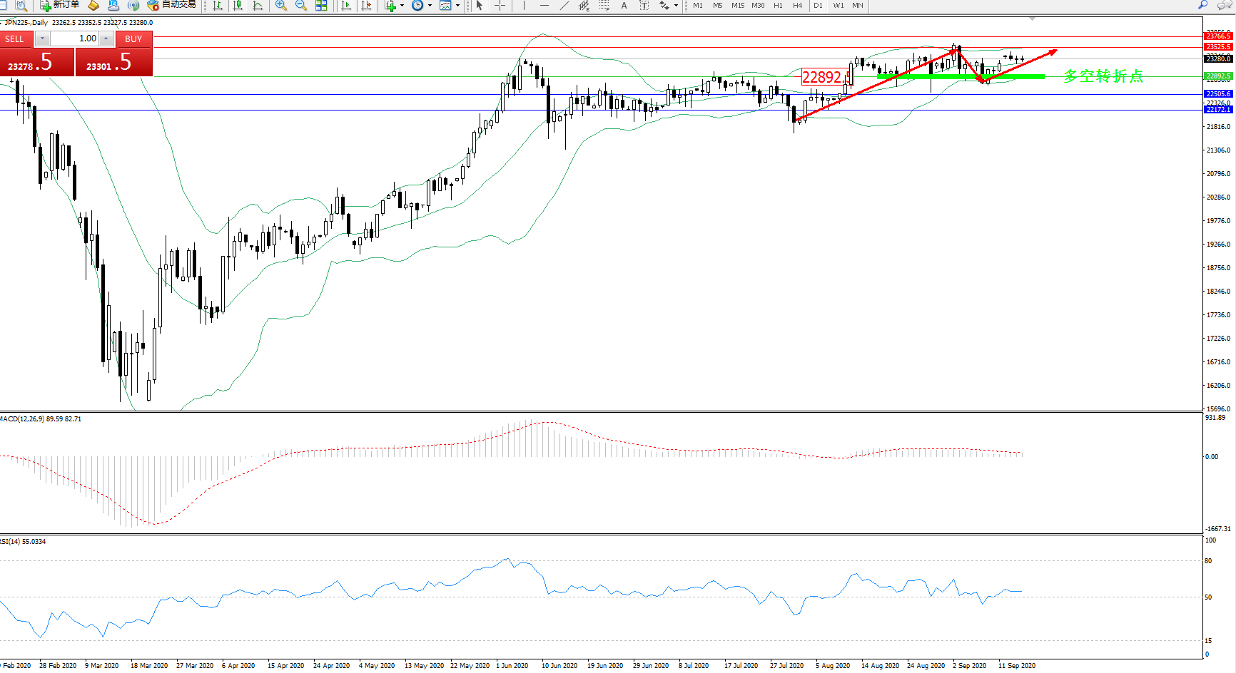 日经225指数9月16日(周三)收盘上涨6.11点,涨幅0.03%,报23461.00点。菅义伟正式出任日本第99任首相,菅义伟已经确定内阁成员,市场仍关心日本政局前景,安倍晋三在自民党总裁菅义伟及其他官邸职员的目送下离开了首相官邸。日本现任内阁全体辞职。当天上午,安倍晋三在推特上发告别视频,对日本民众在自己近8年执政期间给予的鼓励和支持,表达了衷心感谢。同时,他也呼吁大家对新一届内阁继续给予理解和支持。 日本8月出口连续第六个月录得两位数降幅,对美国出口大降,因新冠疫情导致全球需求放缓,这为贸易引领经济摆脱深度衰退的憧憬笼罩阴云。出口下降凸显出日本新任自民党总裁菅义伟在推动经济复苏方面所肩负的重任。8月出口下降是受到汽车与矿物燃料出口下滑的拖累,不过降幅比7月有所放缓,因为经济活动显露出升温迹象。