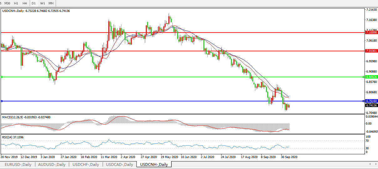 美元兑人民币USDCNH 日线图: