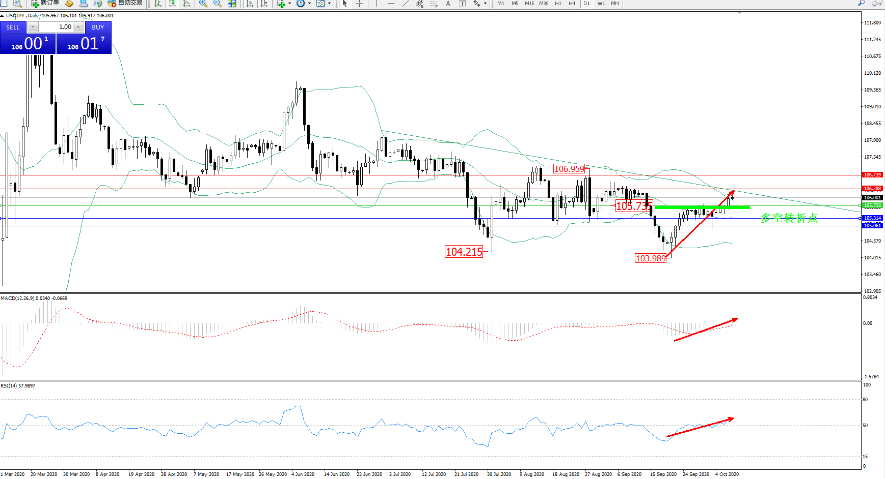 美元兑日元涨0.05%至106.03,接下来几个交易日将有近30亿美元执行价在106的期权到期;美联储9月的声明传递了对利率保持耐心的信息,为美联储债券购买计划提供指导很重要,受到经济复苏的鼓舞,但仍然存在“重大”风险,如果财政援助消失,复苏可能会停滞。整个市场还是在关注着美国新一轮刺激,美国疫情仍然很严重,欧洲也是,这会促使这些地区央行和政府推出更多刺激;美国总统特朗普本周叫停了新一轮刺激的谈判,但又表示将救助美国航空业以及向民众分发1200美元救助金;市场需要财政和货币政策两方的推动。美国疫情仍然很严重,市场风险偏好情绪依旧谨慎,并无太多偏向,近期日元连续下挫,也吸引了买盘涌入,但整体而言,日元依旧有望在未来的美国大选中获得避险支撑,日元进一步下挫的概率减弱。