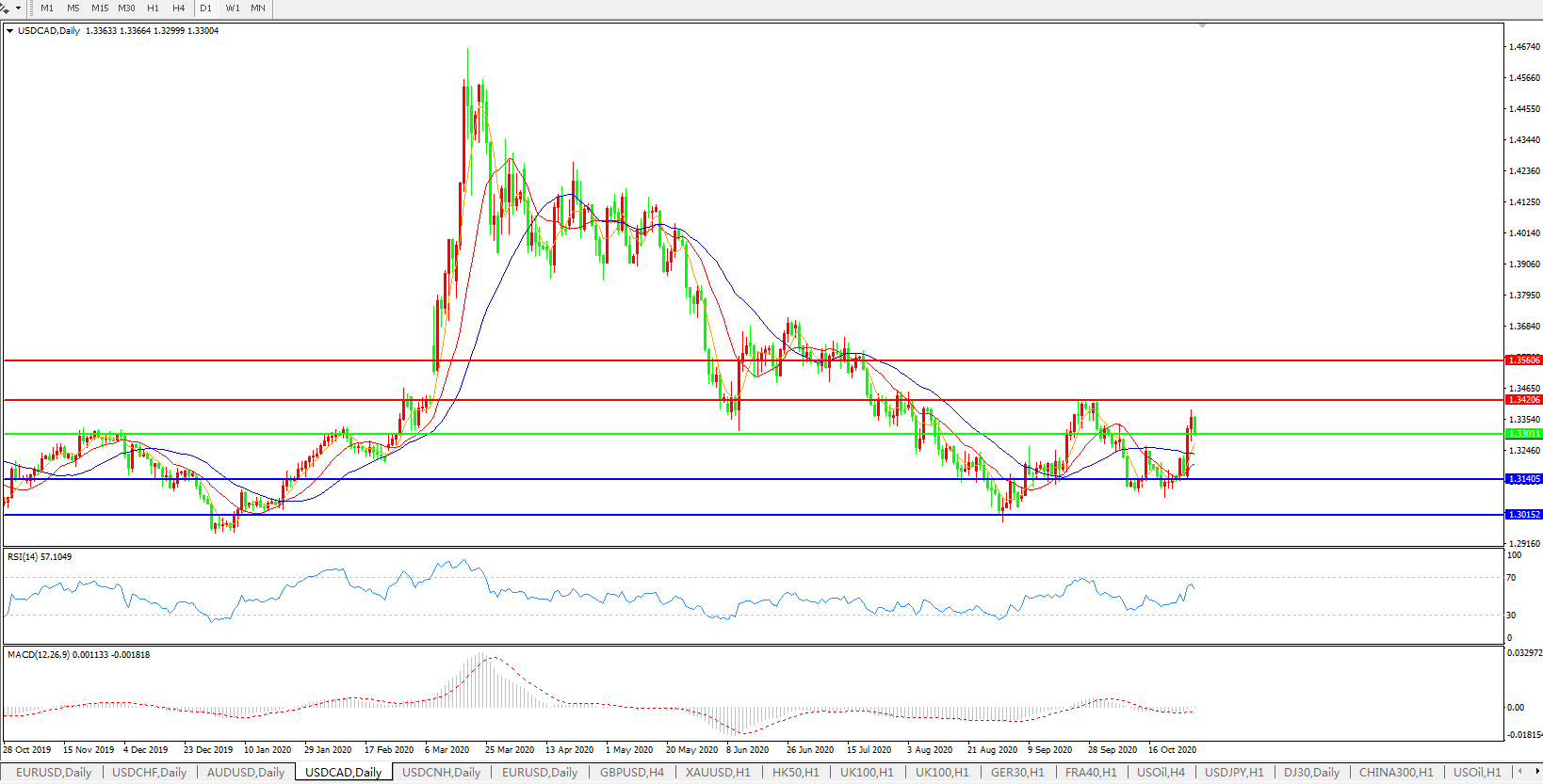 美元兑加元USDCAD 日线图: