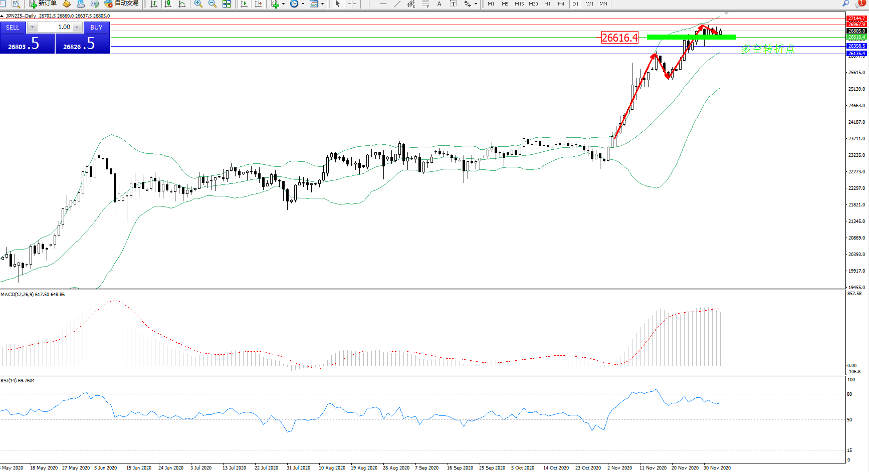 日经225指数12月4日(周五)收盘下跌59.37点,跌幅0.22%,报26750.00点。日本刺激计划草案:日本将延长旅游支援项目“Go To Travel”至2021年6月末。预计日本央行将为货币政策提供指导,同时将密切监控疫情对经济的影响。政府正在与央行合作就合适的财政和货币政策努力。提供给受疫情影响公司的无利率贷款将延长至2021年3月。将采取强有力的措施避免回到通缩情况。日本政府将为地区银行提供补贴,通过并购整合提振业务。将审阅日本银行业情况,加速数字化和地区经济恢复。日本研究人员发现,感染新冠病毒半年后,98%的感染者体内仍有抗体,且病症越严重抗体越强。日本广播协会电视台和共同社等日本媒体2日报道,日本横滨市立大学研究团队以376名2月至5月感染新冠病毒并最终康复的人为对象,分析他们感染后半年的血液样本,发现98%的人体内仍有中和抗体。