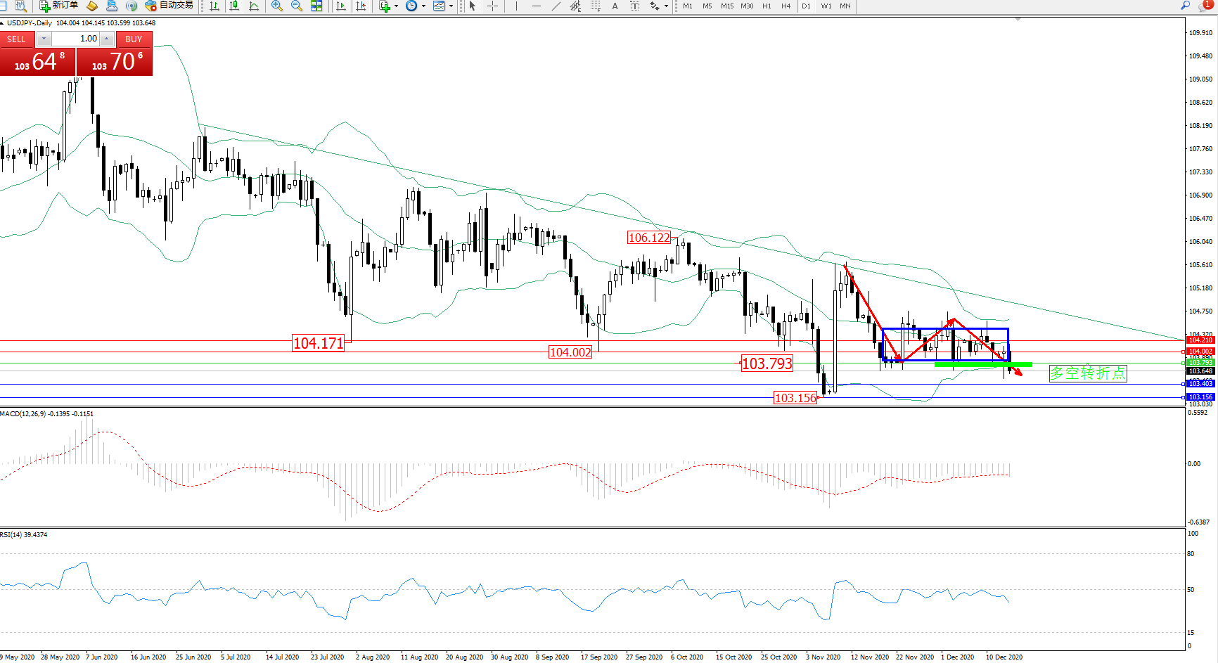 美元兑日圆持续震荡下行至106.648附近整理。全球投资者此前因为新冠病毒疫苗得到批准开始应用而带动上升的风险偏好情绪日内重新回落,各界人士转而对疫苗的安全性、有效性及全面普及性前景再生疑虑,这令资金再度重返避险资产,预计日本经济2022年初或能回到疫情前水平;日本经济今年的萎缩幅度将小于最初预期,但至少要到2022年初才能回到新冠疫情暴发之前的水平;尽管经济仍受到疫情的影响,对日本央行下一步政策行动的看法仍存在分歧。这凸显出有更多人认为,该央行扶助经济增长的手段可能已经用尽。本周稍后的两国货币政策决策会议也将尤为受到瞩目。在此之前,疫情扩散消息与疫苗应用前景的赛跑,仍将是左右汇市风险情绪的关键,这将令美元兑日元汇价暂时也仍在横盘区间中继续震荡。